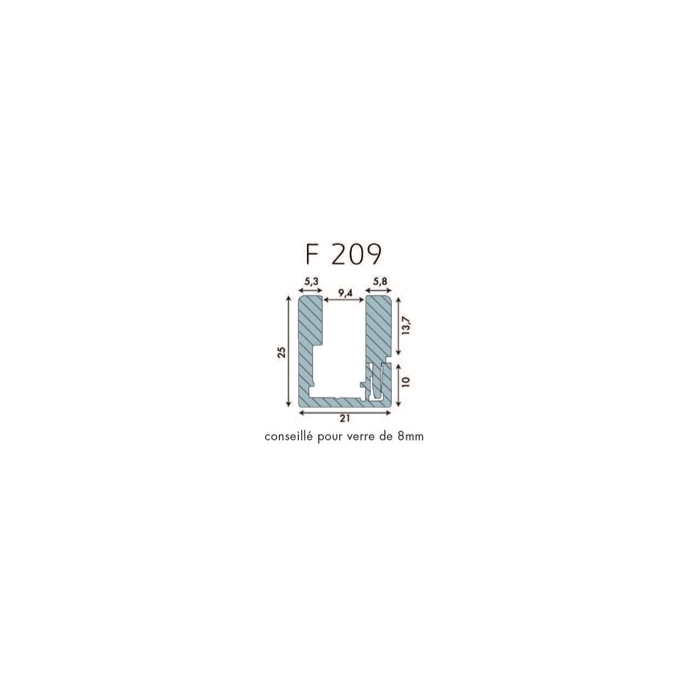 Aluminium, Glas/Wand, 8 / 8.76 mm, L = 2900 mm