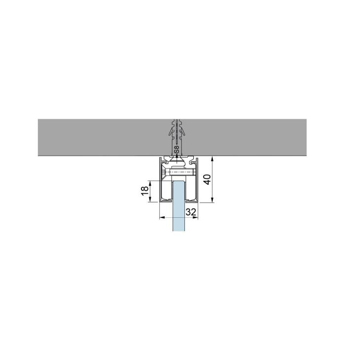 Klemmprofil für Festteile, ohne Glasbohrung, 40 x 32 mm, Aluminium, naturfarbig eloxiert EV1, Glasstärke 12 mm, Deckenmontage, L = 6000 mm