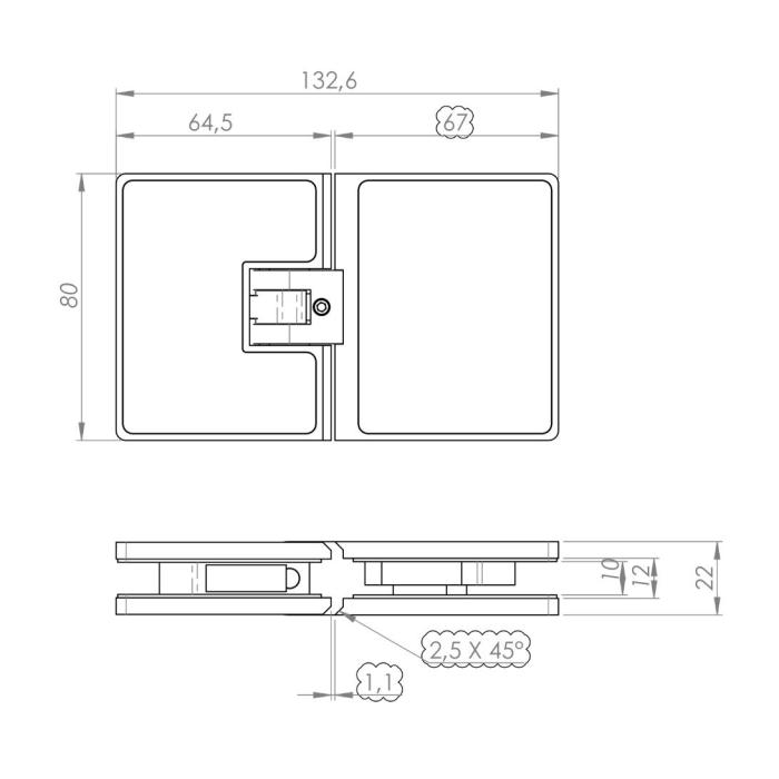 autochiusura a partire da 15°, posizione zero da impostare (+ / - 5°), con blocco a 90° (interno ed esterno), avvitatura nascosta con copertura magnetica, battuta d'acqua - dimensioni della fessura ottimizzate per l'uso con o senza guarnizioni, larghezza/altezza massima della porta 10 mm: 1000 x 2000 mm o 900 x 2100 mm, 8 mm: 1100 x 2250 mm, testato per 100.000 cicli