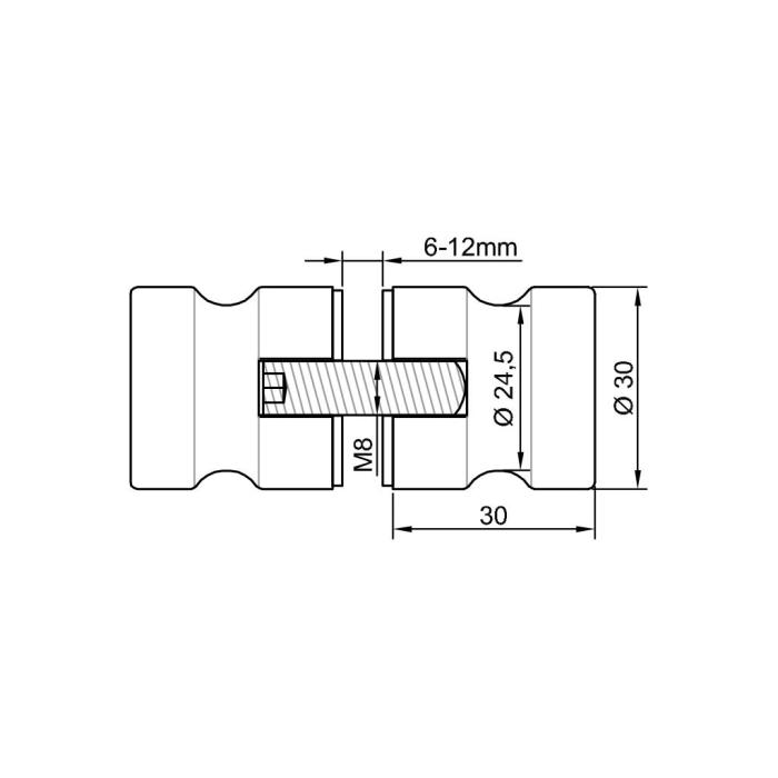 Pomello per porta in vetro serie Skyline , Ø 30 mm, alluminio, effetto cromato, Spessore di vetro 6 - 10 mm, montaggio vetro (coppia)